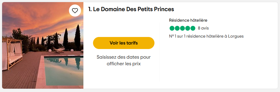 Au cœur du Var et de la Provence, à égale distance du bord de mer et des Alpes de Haute-Provence, à moins d'une heure de l'aéroport Nice Côte d'Azur et à 80 minutes de la Principauté de Monaco, nous aurons le plaisir de vous accueillir dans nos suites de très haut standing, entièrement équipées. Dans un parc paysager de plus de 6000m2, profitez de toutes les installations à votre disposition et partez à la découverte des nombreux villages pittoresques des environs, des attractions touristiques et des lieux magiques et insolites que notre belle région saura vous offrir. Le temps d'une journée, d'un week-end ou pour une semaine de vacances, le Domaine des Petits Princes saura combler les attentes des plus exigeants. Notre propriété est particulièrement adaptée aux familles et recommandée par les enfants !